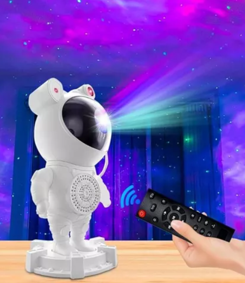 Este adorable astronauta no solo proyecta un cielo estrellado lleno de colores relajantes, también es un parlante Bluetooth que te acompaña con tu música favorita o con sonidos relajantes para descansar, estudiar o meditar. 🎶💫